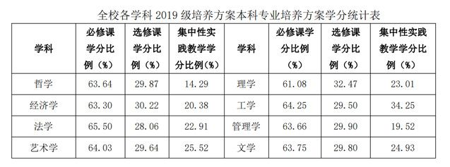 本学年学校专业平均总学分155.5,其中实践教学环节平均学分35.065,占比22.55%,全校各学科门类实践教学学分占总学分比例见下表。