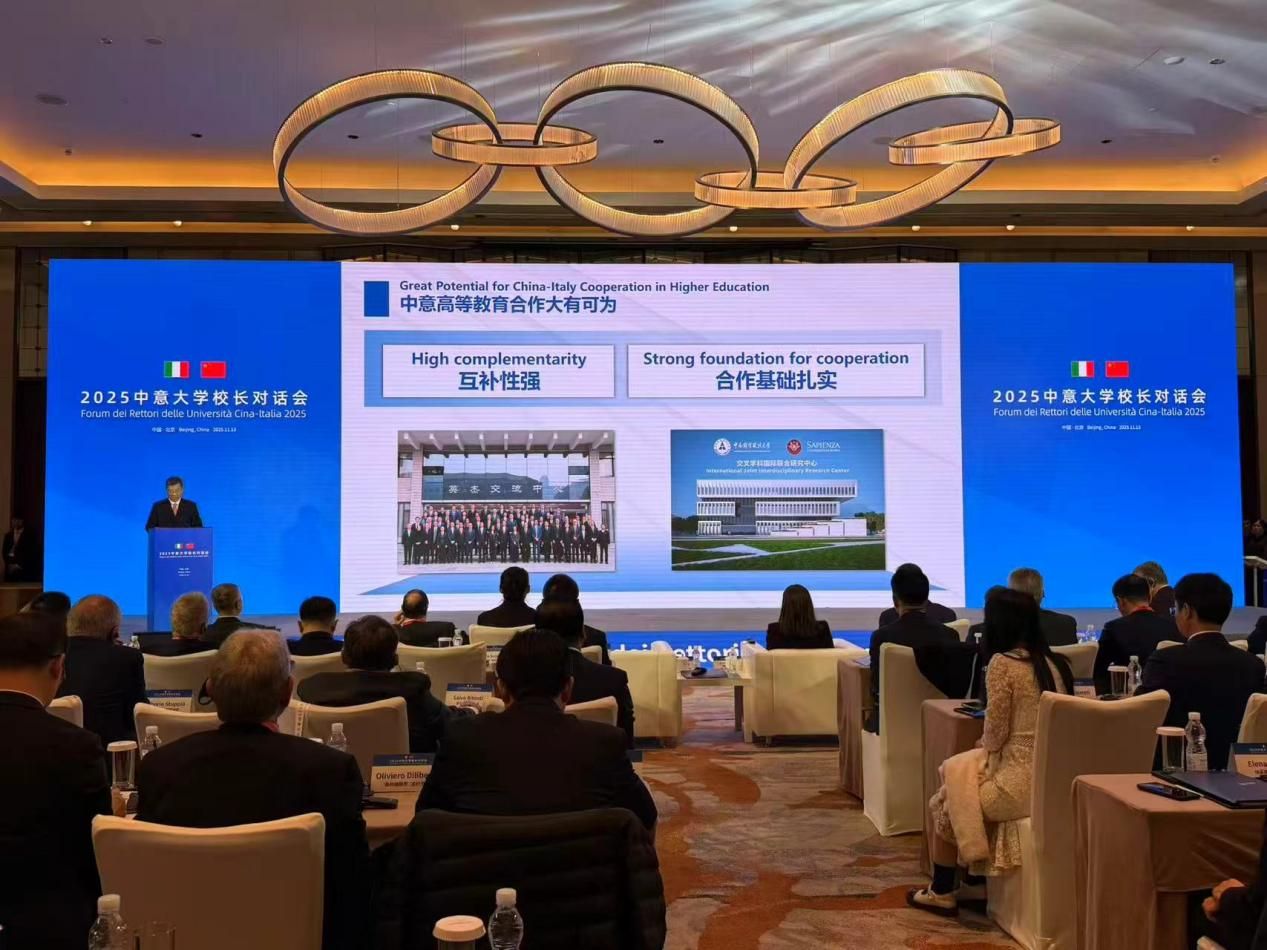 新闻网讯(通讯员 张俊)11月13日,以“融合·创新·治理”为主题的2025中意大学校长对话会在北京举行。对话会由中华人民共和国教育部与意大利大学和科研部共同举办。来自中国和意大利60余所高校和机构的嘉宾代表,围绕推进学科交叉融合发展、创新合作办学模式、培养全球治理人才等议题,分享中意双方在高等教育领域的合作成果,畅谈全球化视野下中意高等教育合作未来方向。中南财经政法大学校长、党委副书记朱方伟及意大利罗马第一大学中国事务校长代表、我校法与经济学院意方院长奥利维耶罗·迪利贝托参加对话会。